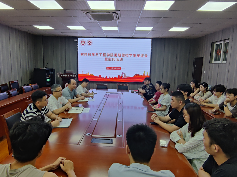 本网讯 材料科学与工程学院于8月7日在B座216开展暑期留校学生座谈暨慰问活动。学院党委书记孙宏义、团委书记、辅导员及留校学生代表参加活动,会议由院党委副书记方玖胜主持。
