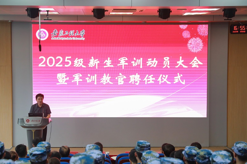 本网讯 9月8日,学校在5教117召开2025级新生军训动员大会暨军训教官聘任仪式。校党委常委、副校长张开炳出席会议,鸠江区人武部政委陶然,校团委、武装部负责人,各学院党委副书记,全体新生辅导员,军训教官及新生代表参加会议。