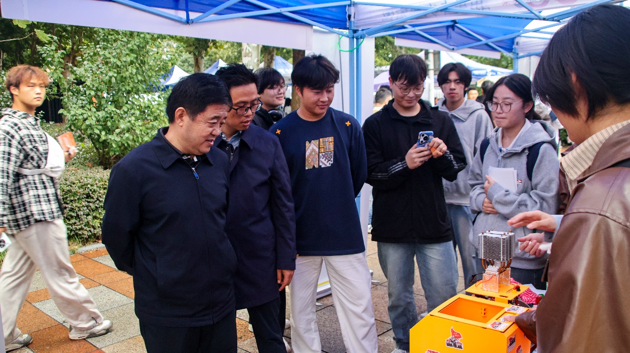 本网讯 10月18日,大学生“一站式”社区青年广场热闹非凡,“九秩芳华岁月稠 薪火相传启新程”为主题的社团文化节暨社团纳新活动在此举行。15个校级学生组织与67个学生社团参与招新。活动期间,校党委常委、副校长张开炳深入各个活动展区,与同学们亲切交流。