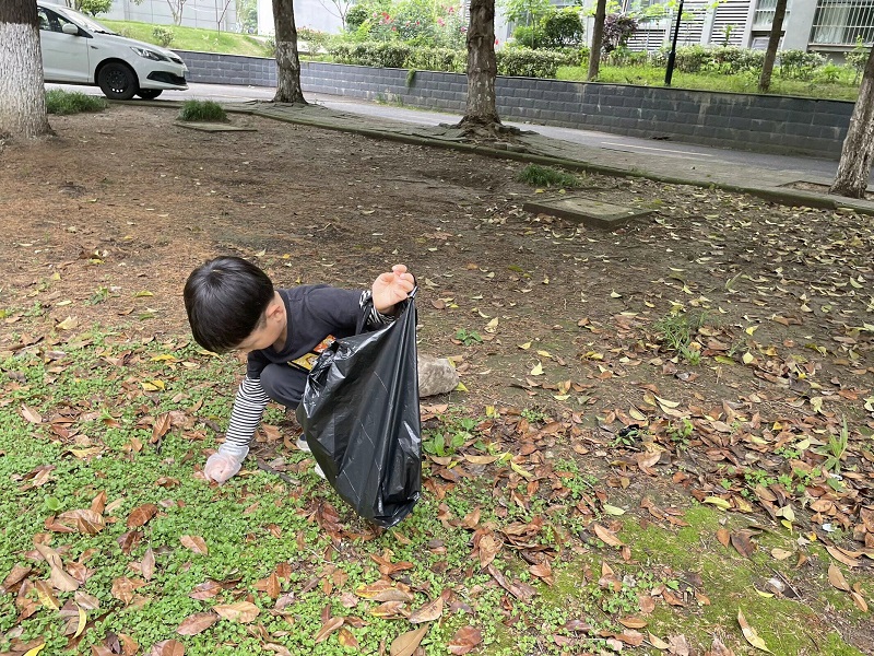 孩子们个个热情高涨,不怕脏、不怕累,不放过任何一个角落,无论是夹在草丛里的枯叶,还是隐蔽在角落里的塑料瓶、烟头等都放入了事先准备好的垃圾袋中,看着孩子们认真的样子,老师们满怀欣慰!