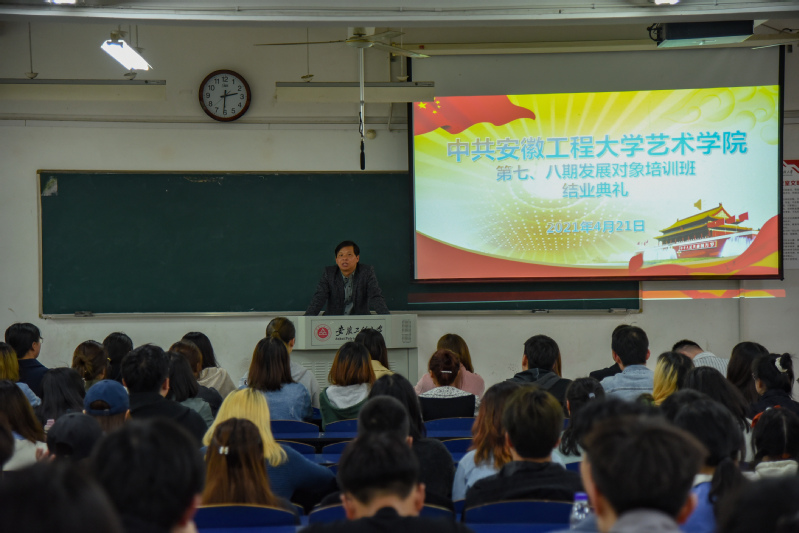 421日,艺术学院在6J212教室举行艺术学院分党校第七、八期发展对象培训班结业典礼,党委副书记任家钱及128位结业学员出席本次典礼,典礼由培训班班主任姚丽老师主持。