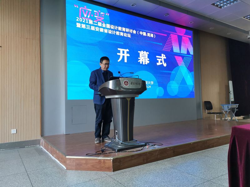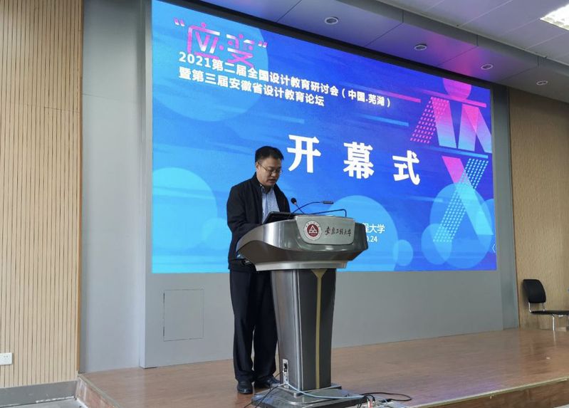 10月24日上午,“应·变”2021第二届全国设计教育研讨会暨第三届安徽设计教育论坛开幕式在学校5教117举行。副校长叶常林出席并致辞。来自省内高校设计学类专业的教师代表、艺术学院教师和学生代表参加开幕式。开幕式由艺术学院院长陆峰主持。