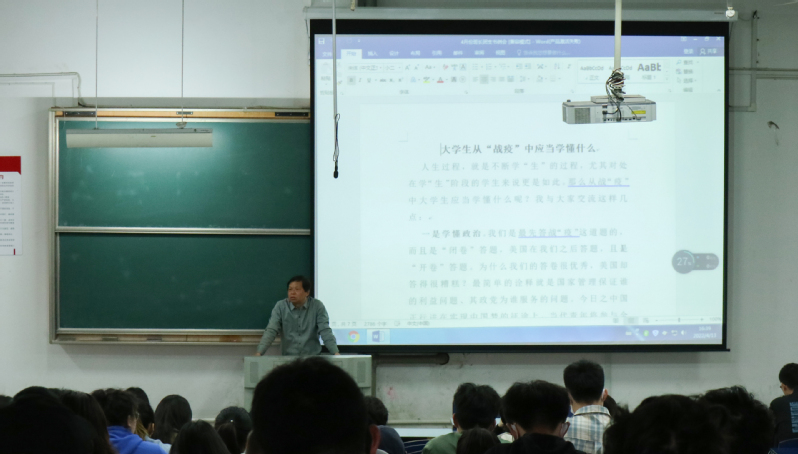 首先,院党委副书记任家钱作了《大学生从“战疫”中应学懂什么》报告。他在报告中指出大学生从当前抗疫中一是学懂政治,通过中外疫情防控比较,彰显了中国共产党领导、社会主义制度的巨大优越性,青年大学生应坚信党的领导,矢志不渝跟党走。二是学懂服从,要坚决服从学校和属地的疫情防控规定。三是学懂思辨,要坚信学校一定会以广大师生的根本利益为落脚点,在上级党委的领导下,在属地政府部门大力协助下,集中一切力量打赢这场危及师生人身安全的战“疫”。四是学懂慎独,要把慎独培养成一种品格,无论何时何处,都要表里如一,做对的事。要严格遵守疫情防控相关的法律、法规和规章制度,不能抱有侥幸的心理。五是学懂尊重,要尊重方方面面提供的服务管理。要知道,我们现在还可以在校园内自由地学习生活,是因很多人在负重前行,默默奉献。要懂得感恩。六是学懂健体,健康的身体无疑是取得防疫全面胜利的重要条件,强身健体是对民族负责、国家负责、父母负责,也是对自己最根本的负责!