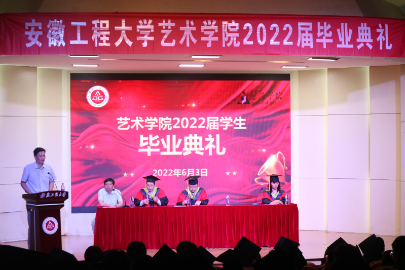 典礼在庄严的国歌声中开始。院长陆峰宣读了授予2022届毕业生学士学位和毕业生硕士学位的决定,向顺利完成学业的毕业生们表示衷心的祝贺。他说,同学们求学期间,用拼搏和奋斗宣示了自己的人生态度,用激情和协作诠释了自己对于青春的理解,展现了艺术学院青年学子的精神风貌与责任担当。毕业之际,希望同学们矢志艰苦奋斗,坚持砥砺奋进,继续发扬“尚德敏学,唯实惟新”的校训,牢记“诚实做人、踏实做事、扎实做学问”的育人理念,用智慧和汗水浇灌出绚丽的青春之花。