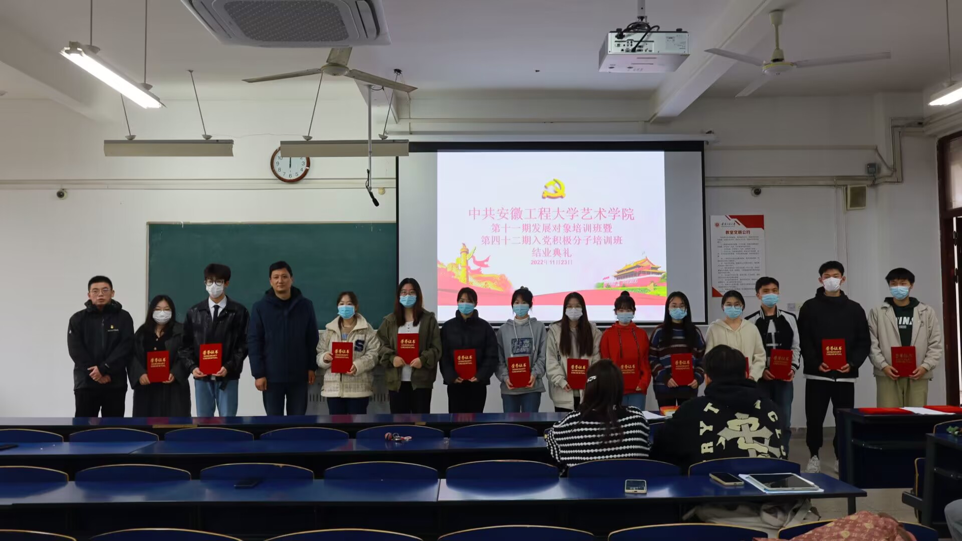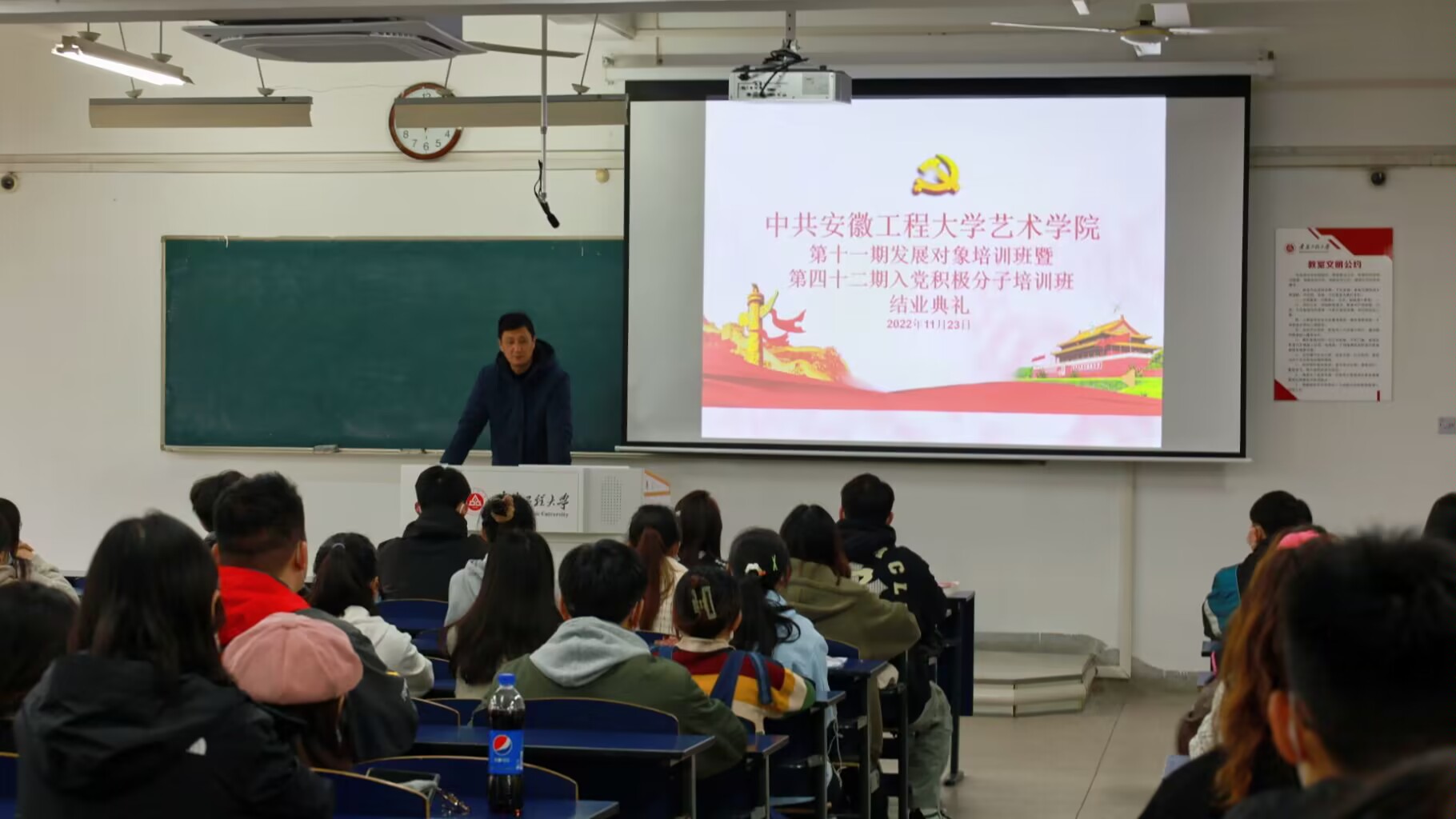 为深入学习领会党的二十大精神,贯彻落实学校“三抓”和“三全六专”工作要求,切实提升党员发展质量,激励入党积极分子和发展对象以昂扬姿态奋进新征程。2022年11月22日下午,艺术学院分党校第十一期发展对象培训班暨第四十二期入党积极分子培训班结业典礼在六教211教室举行。艺术学院党委书记胡家增出席会议,典礼由动画数字媒体艺术学生党支部书记吴旭主持。
