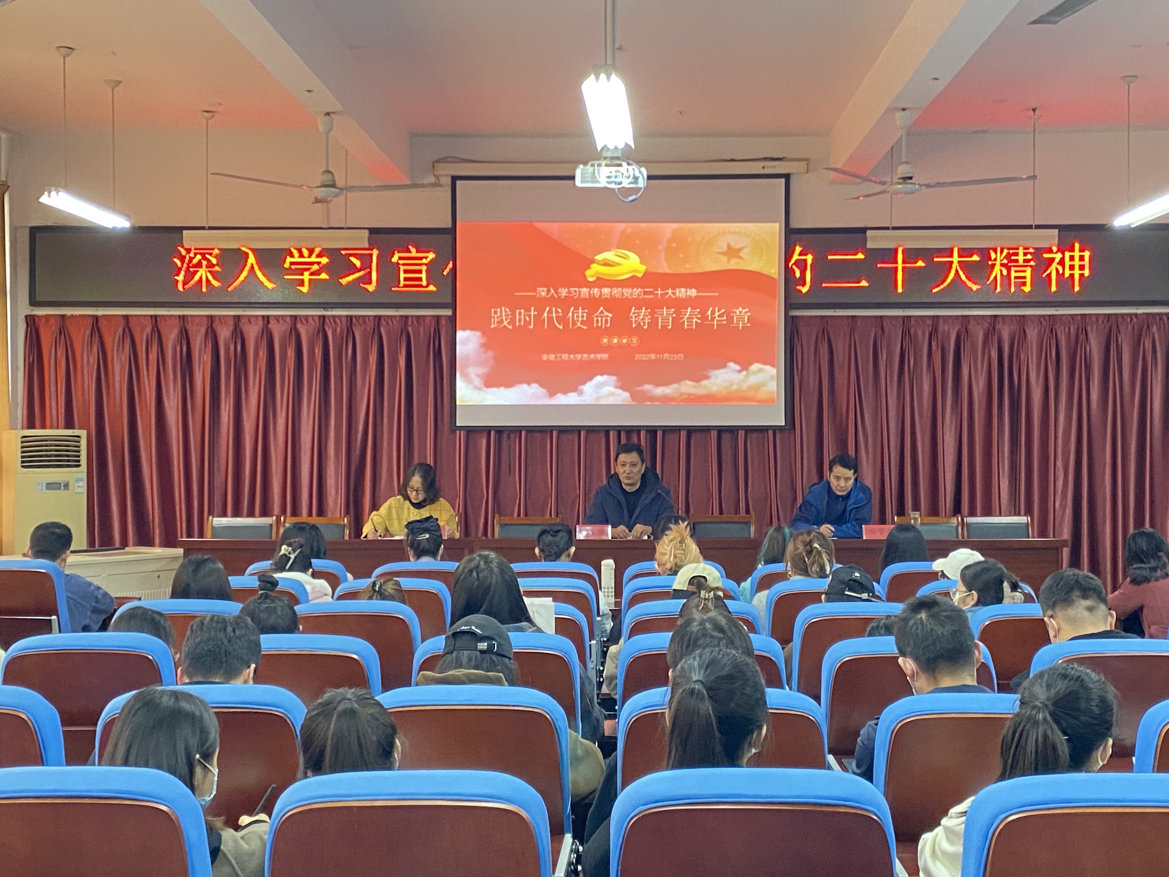 11月23日下午,艺术学院研究生党支部开展深入学习贯彻宣传党的二十大精神的主题党课,艺术学院党委书记胡家增、党委副书记彭海燕、艺术学院党委委员研究生分管院长张学东为全院研究生党员讲“践时代使命,铸青春华章”为题的二十大精神专题党课。