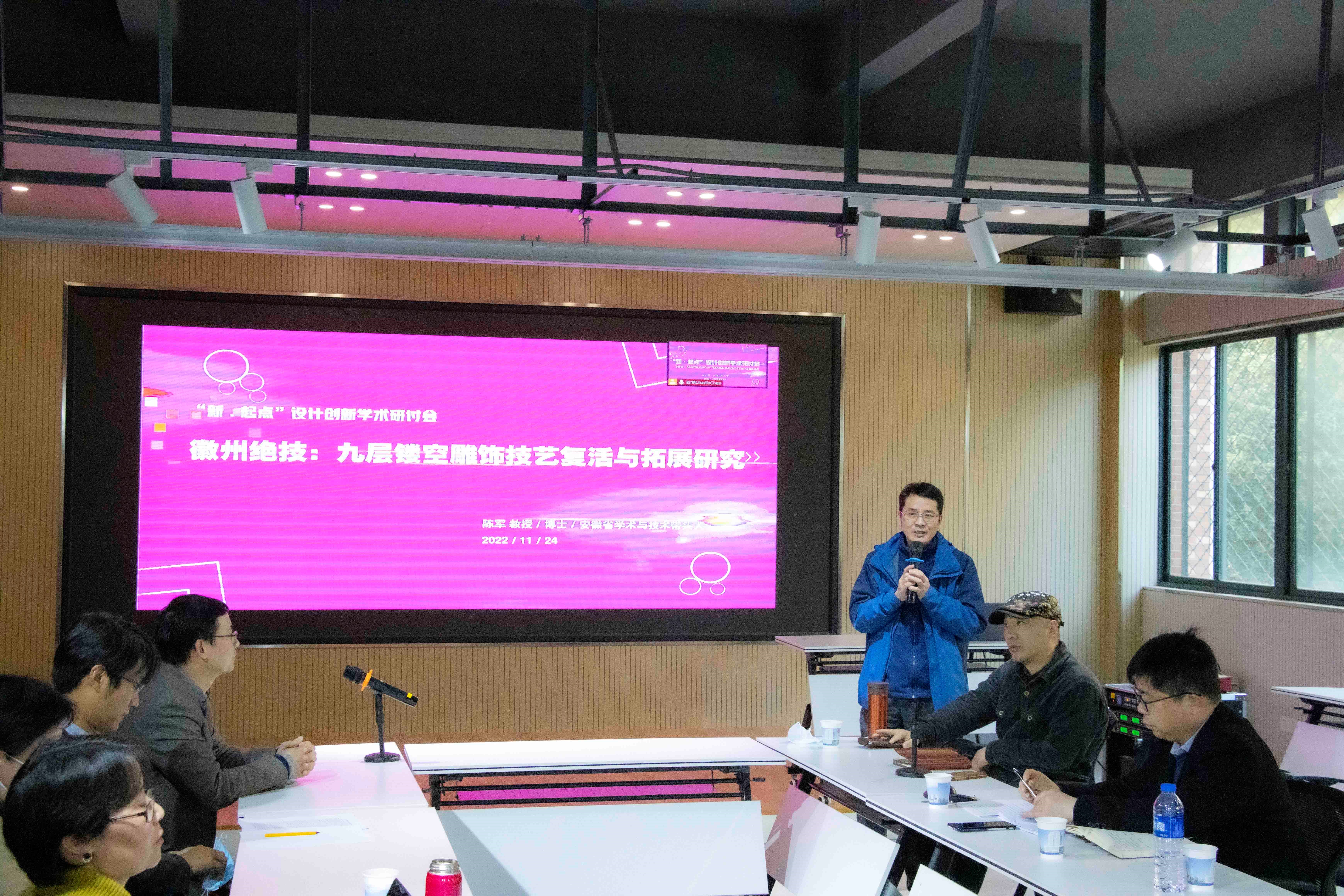 11月24日,在艺术学院7教1楼多功能厅举办了2023年国家基金项目(艺术学和冷门绝学)申报交流会。此次学术会议是艺术学院“新·起点设计创新研讨会”的首场报告会。科技处王宗乾副处长,艺术学院张学东副院长,艺术学院部分专业教师和研究生出席会议。会议邀请艺术学院陈军教授做了题为《徽州绝技:九层镂空雕饰技艺复活与拓展研究》的学术报告。会议由张学东副院长主持,采取线上线下结合的方式进行。