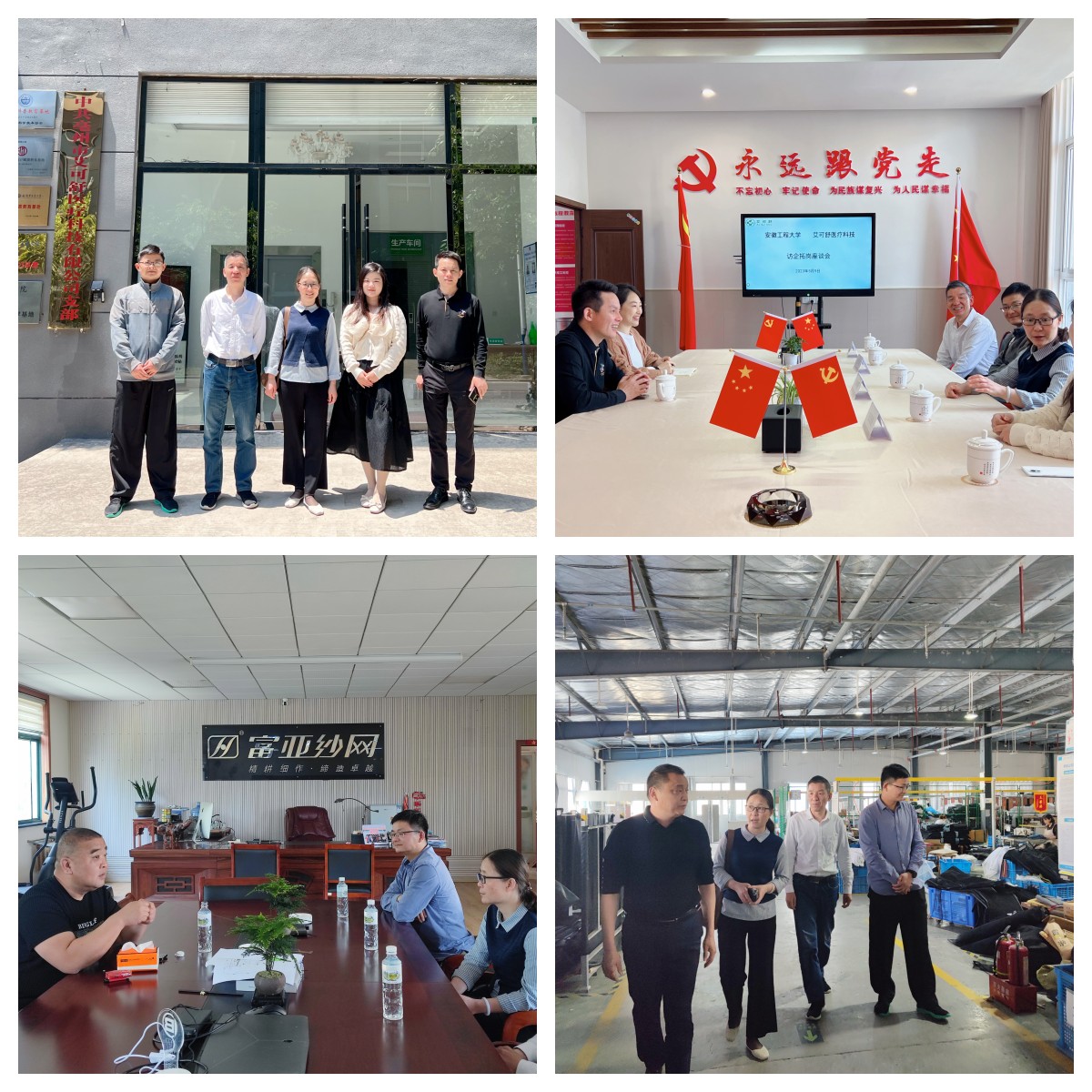 彭海燕一行先后考察走访了亳州艾可舒医疗科技有限公司利辛富亚网纱有限公司、安徽娇阳软门有限公司,现场参观了企业环境、调研了企业发展历程、现状和前景,详细了解企业文化、人才需求、发展规划等,并与企业负责人就学院专业建设、校企合作、人才培养、实习就业等方面交换了意见。