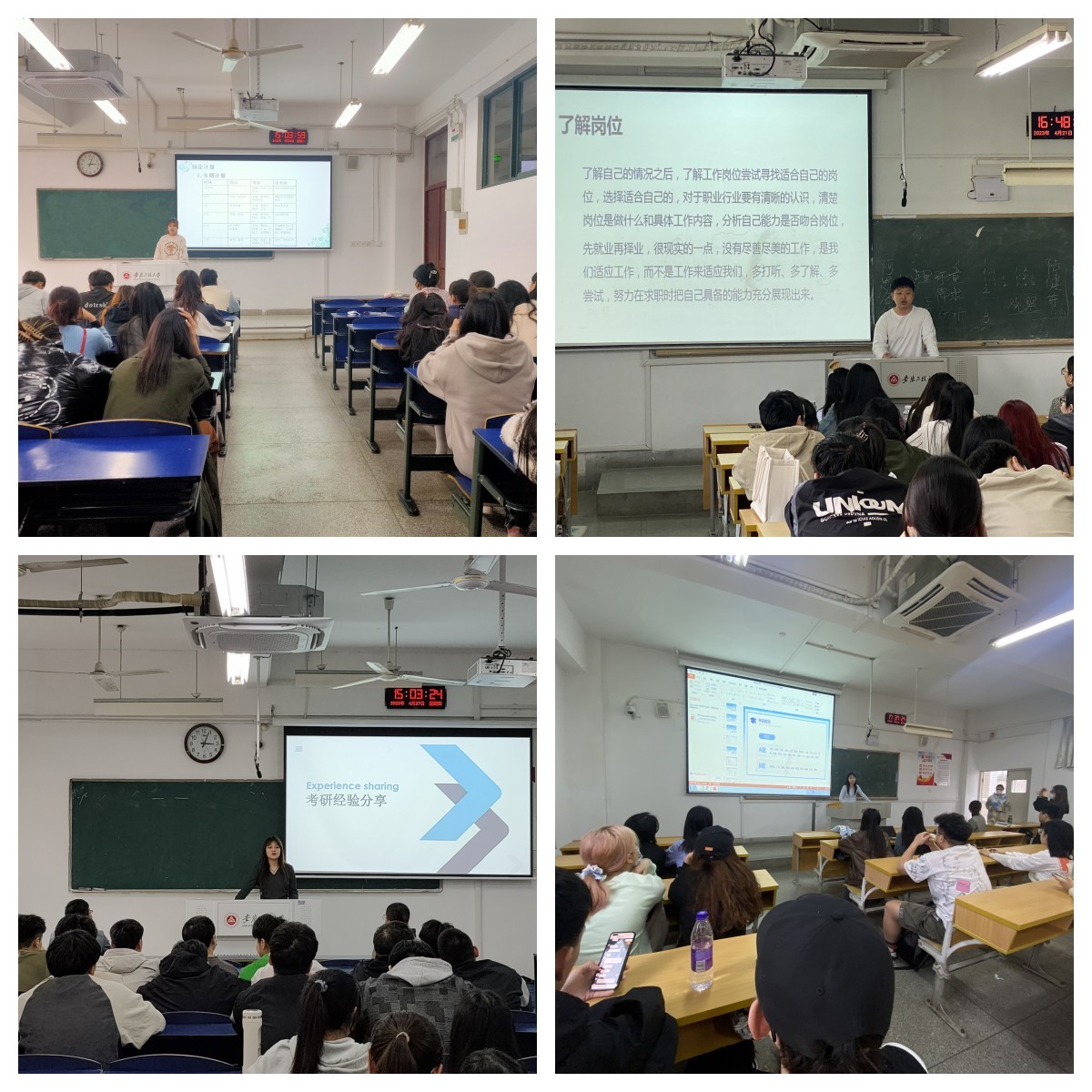考研上岸的学长学姐从考试内容、学习计划、复试经验等方面为大家提供了许多建设性意见和建议,和同学们分享了包括考试题型资料选择作品集制作在内的诸多备考经验。毕业班就业学生代表们从获取招聘信息渠道、个人简历制作、职业选择、笔试和面试经验等方面分享了自己的求职经历,他们建议学弟学妹们要深入了解用人单位的需求和行业趋势,主动投递简历、积极参加各类招聘会和校园宣讲等活动,积极寻找机会,不断提升自己的就业竞争力。
