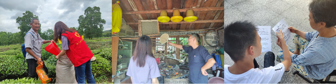 为进一步发掘民间茶文化,志愿者们走访当地村庄,通过与茶农的交流,以茶叶为主要经济命脉的祁门县村庄内广泛流传的内容丰富的民间传说、事迹和歌谣,为同学们后期的茶文化创作奠定了良好基础。县茶叶研究所的一名退休老员工表示:“茶叶是当地居民最熟悉的‘宝藏’,因为它带来了物质财富,推动了乡村振兴、产业发展。”结合党的二十大精神、国家相关政策以及现代化科技,团队成员向村民们介绍了相关知识,并向红茶产业经营者介绍了互联网+在农业发展方面的相关举措,希望以科技支农的形式实现祁门红茶走向世界,面向未来。