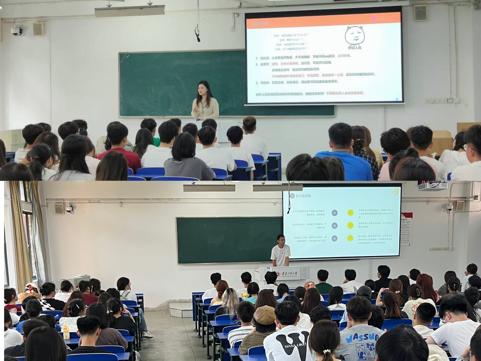 了帮助新生尽快适应大学生活,预防可能发生的心理问题,912日上午,学院邀请心理健康教育中心的李梦菊、李梦圆两位老师为全体2023级新生心理健康教育讲座。两位专业老师从人际关系、食宿问题、大学恋爱等与大学生活息息相关的话题引出,对同学们在学习生活中可能遇到的心理问题进行了分析、解答与引导,并希望大家在未来的大学生活中,要对个人的生活、学习有清晰的规划,学会自我管理。报告会现场,两位老师还组织同学们进行了心理测试。
