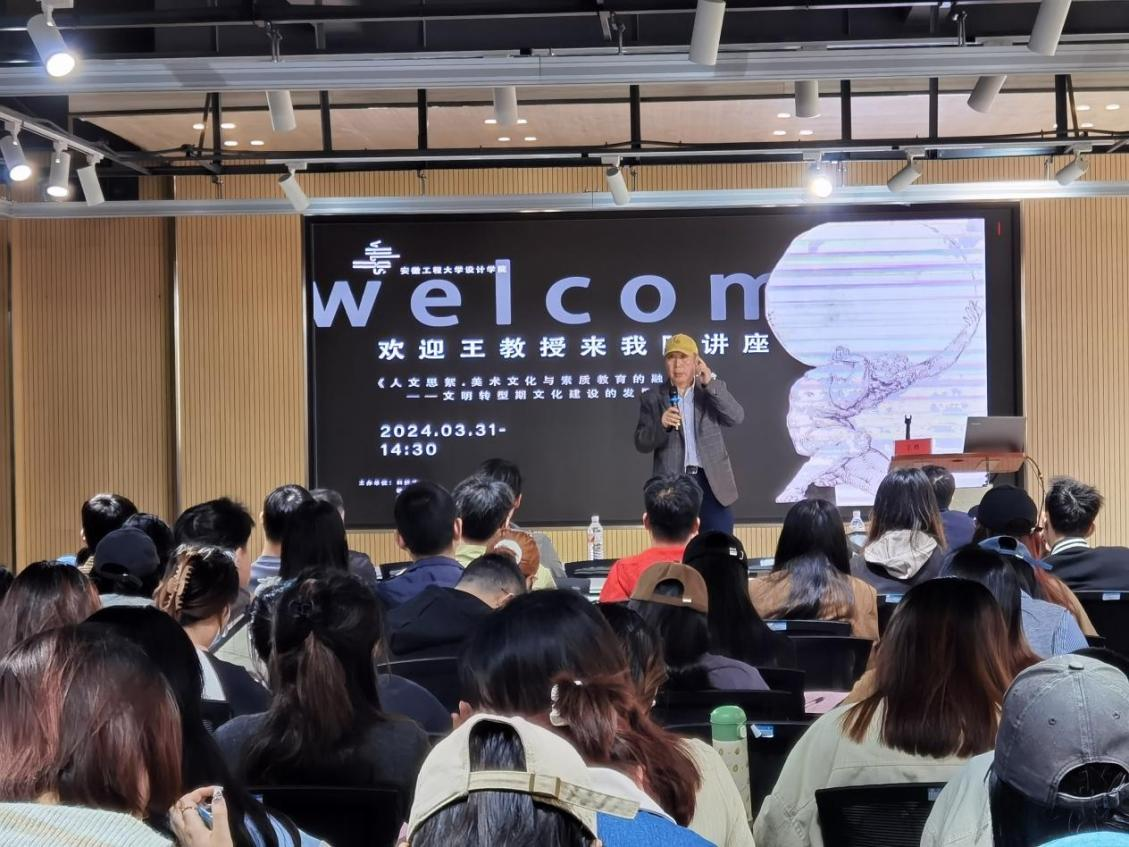 3月31日下午,国家一级美术师王勇教授应邀来设计学院做题为人文思絮:美术文化与素质教育的融合体验——文明转型期文化建设的发展趋势的学术讲座。本次“设计大讲堂”主题讲座在7教1楼报告厅举行,设计学院常务副院长张学东主持,设计学院部分教师和研究生参加。