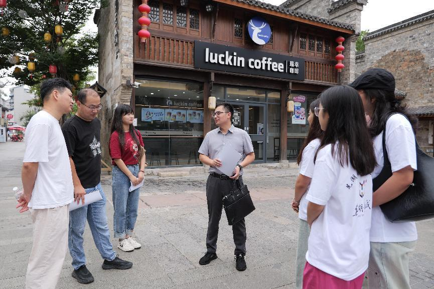 随后,实践团队来到了芜湖古城的核心区域,详细了解古城的文化特色和旅游发展规划。此次剧本杀项目的开展,正是基于古城丰富的文化资源和旅游基础,旨在通过沉浸式体验的方式,让游客在娱乐中感受古城的历史韵味和文化魅力。