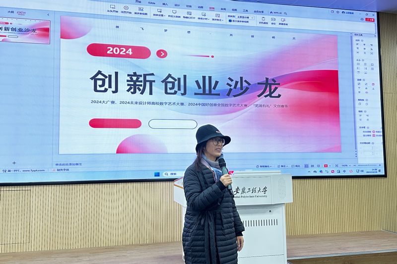 此外,2024未来设计师国高校数字艺术大赛获奖者吴芊晔、王之霁在分享中认为,设计要充分考虑产品特点及其所传达的意义。最后,“芜湖有礼”文创设计大赛获奖者蒋雨欣、刘津两位同学分享了设计作品时应如何将设计与其他艺术形式相结合。