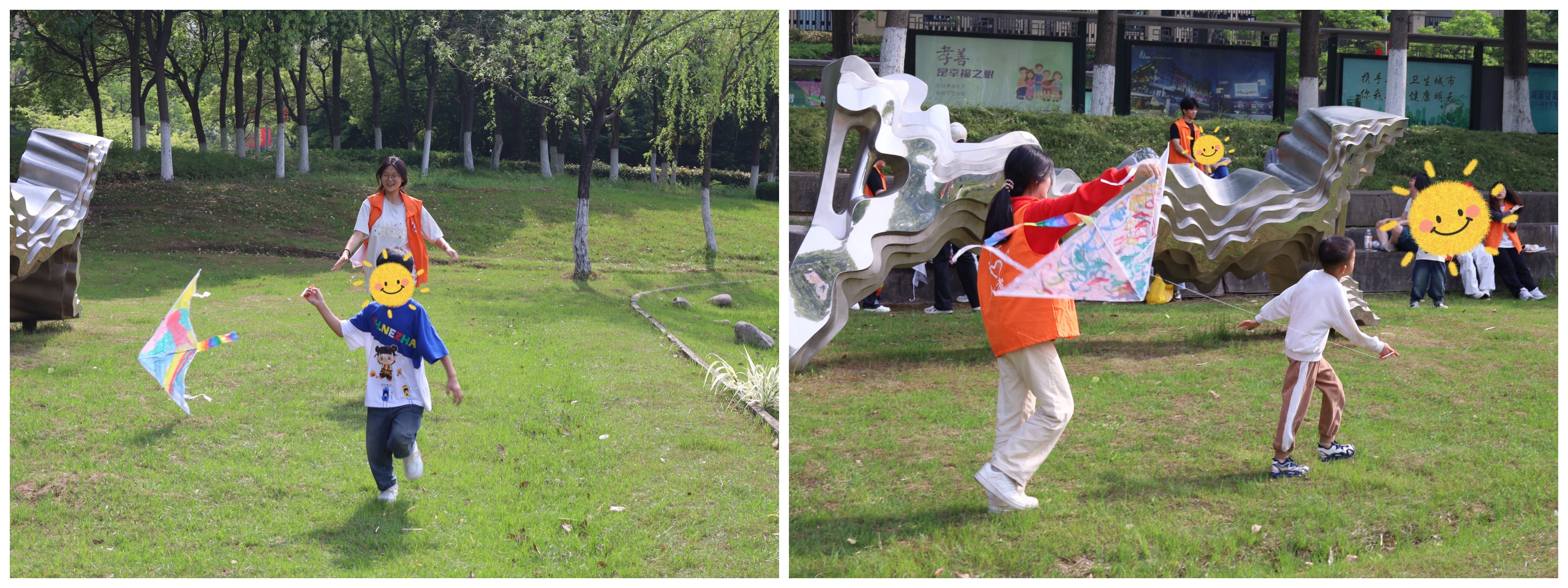 褪去设计稿上的铅尘,设计学院学子们走出校园,投身于广阔的自然天地。沐浴在春日暖阳下,学子们与小朋友们并肩而立,手持亲手制作的风筝,在微风中奔跑、欢笑。风筝在春风的助力下扶摇直上,宛如一只只自由翱翔的飞鸟,承载着孩子们的梦想与希望,飞向湛蓝的天空。