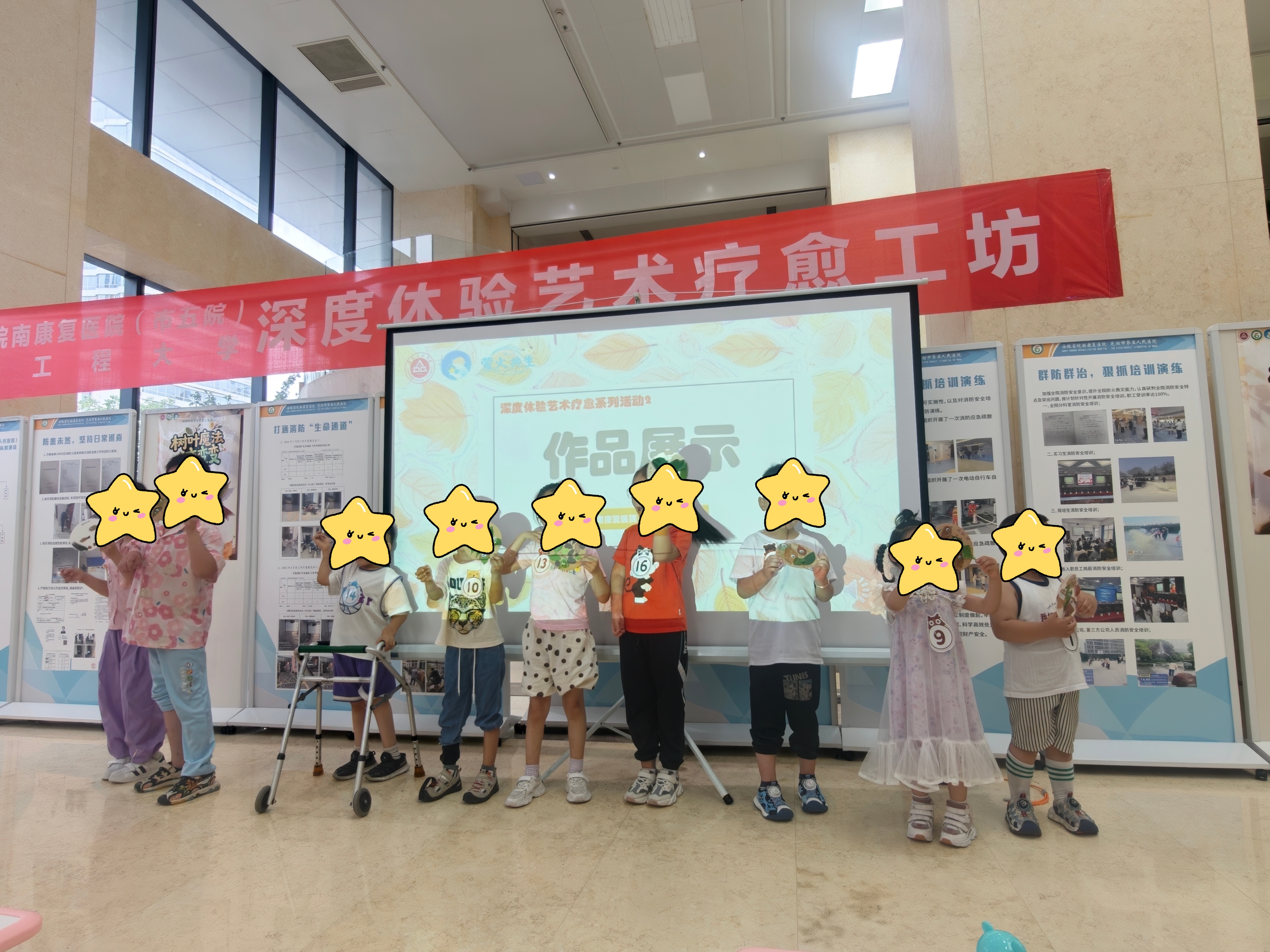 活动尾声,特殊儿童们高举完成的树叶拼图,脸上洋溢着自豪的笑容。志愿者与家长共同布置作品展示区,用镜头记录孩子们的创作成果,并组织简短的分享交流。医护人员、师生与家长围聚一堂,通过作品赏析与活动反馈,共同探讨艺术疗愈对特殊儿童专注力培养、自信心提升的积极作用。志愿者小张动情回忆:钰钰第一次主动拉我的手展示作品时,我触摸到了艺术疗愈最真实的温度。