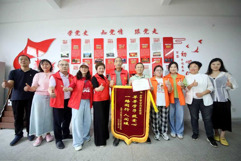 活动创新采用“专业实践+公益服务”双驱动模式:视觉传达系师生依托智汇设计德育教学团队,将广告学专业创意能力融入公益宣传;学院团委则发挥组织协调优势,统筹全校各学院学生参与。9月28日,活动迎来高潮——芜湖好人兰平、弋江区爱心公益志愿者协会会长周家权与设计学院党委完成旧军装交接仪式,好人团队现场赠予学院党委及师生志愿者“爱心接力、德育先锋”锦旗,彰显校地公益合作诚意。兰平表示:“高校学子的创意热情与公益组织的一线经验深度融合,让爱心传递更精准、更可持续。这批衣物不仅解决困难群体的实际需求,更成为青年学子践行社会责任的生动教材。”